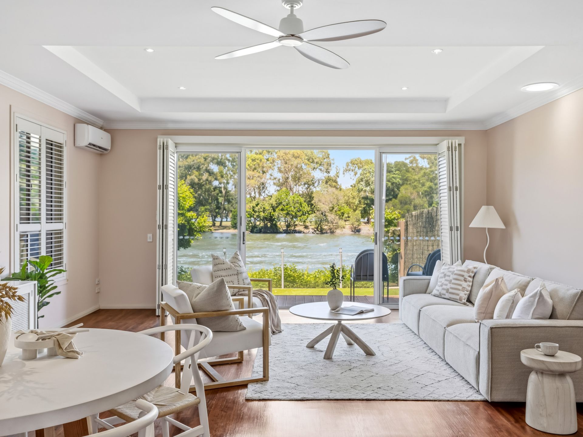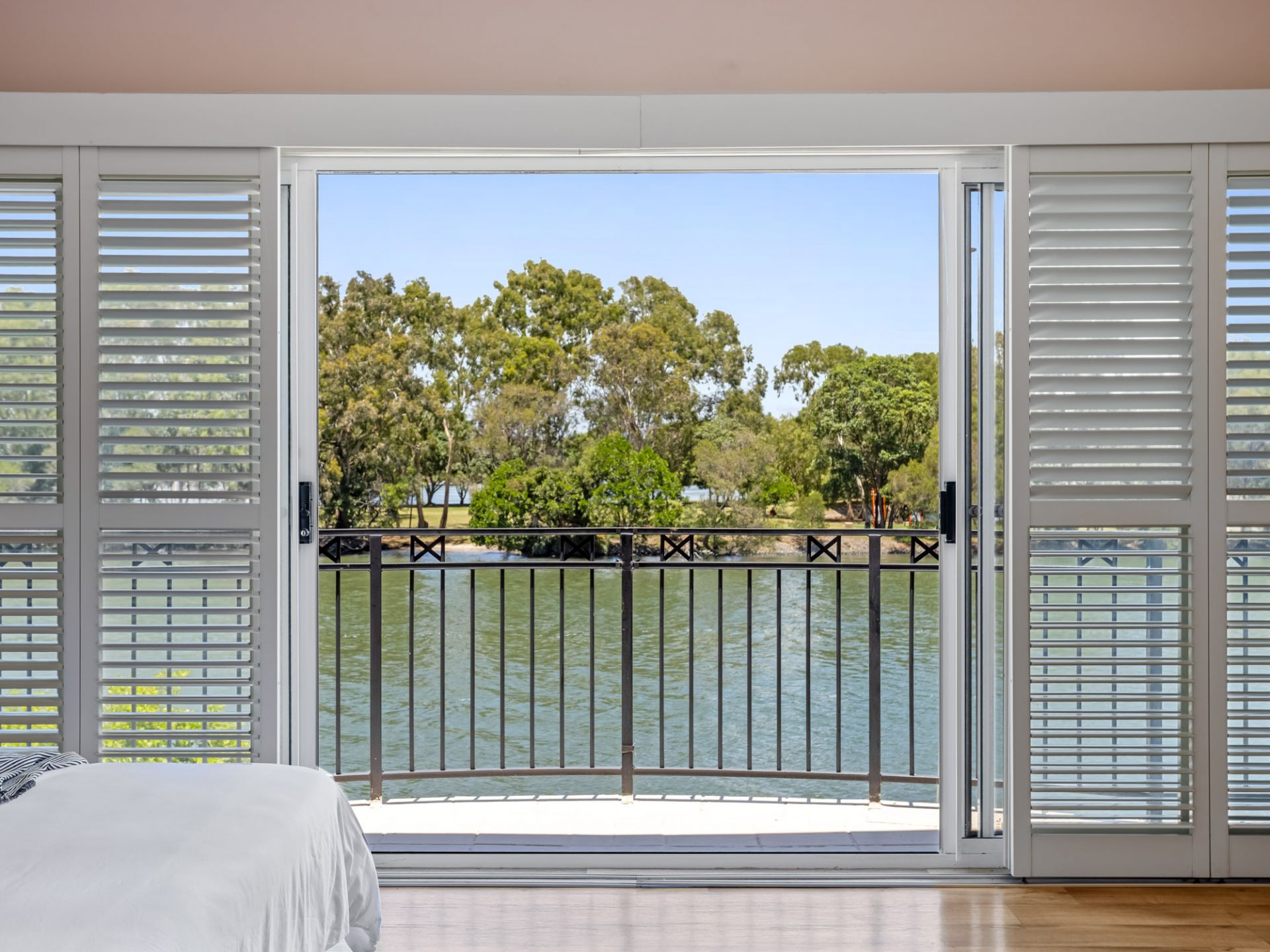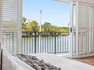 - Master suite with walk in robe, spa ensuite, and private river view balcony