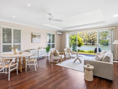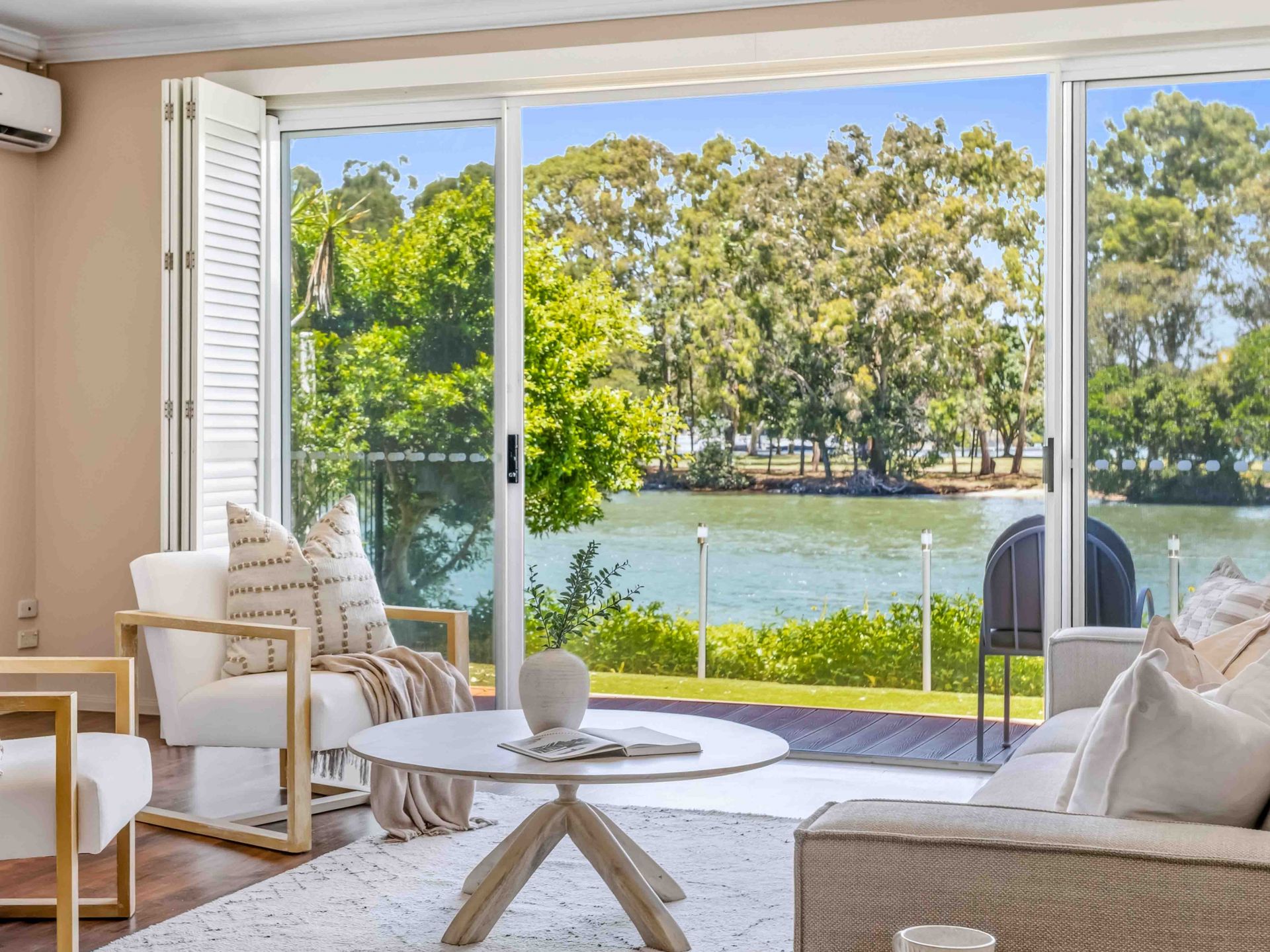 Privately positioned on the Main River in one of Chevron Island's most tightly held waterfront streets, this exceptional duplex residence offers an enviable lifestyle defined by space, serenity and uninterrupted river views. Set back from the road behind secure gates, the home enjoys a strong sense of privacy from the moment you arrive, with landscaped surrounds and a peaceful front entry creating a welcoming first impression.