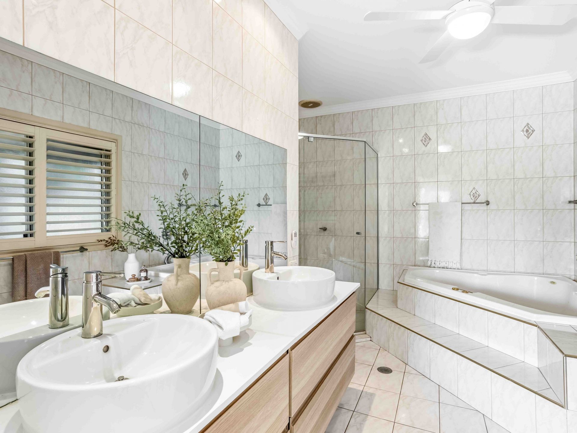 - Private rear alfresco area with landscaped gardens and lawn