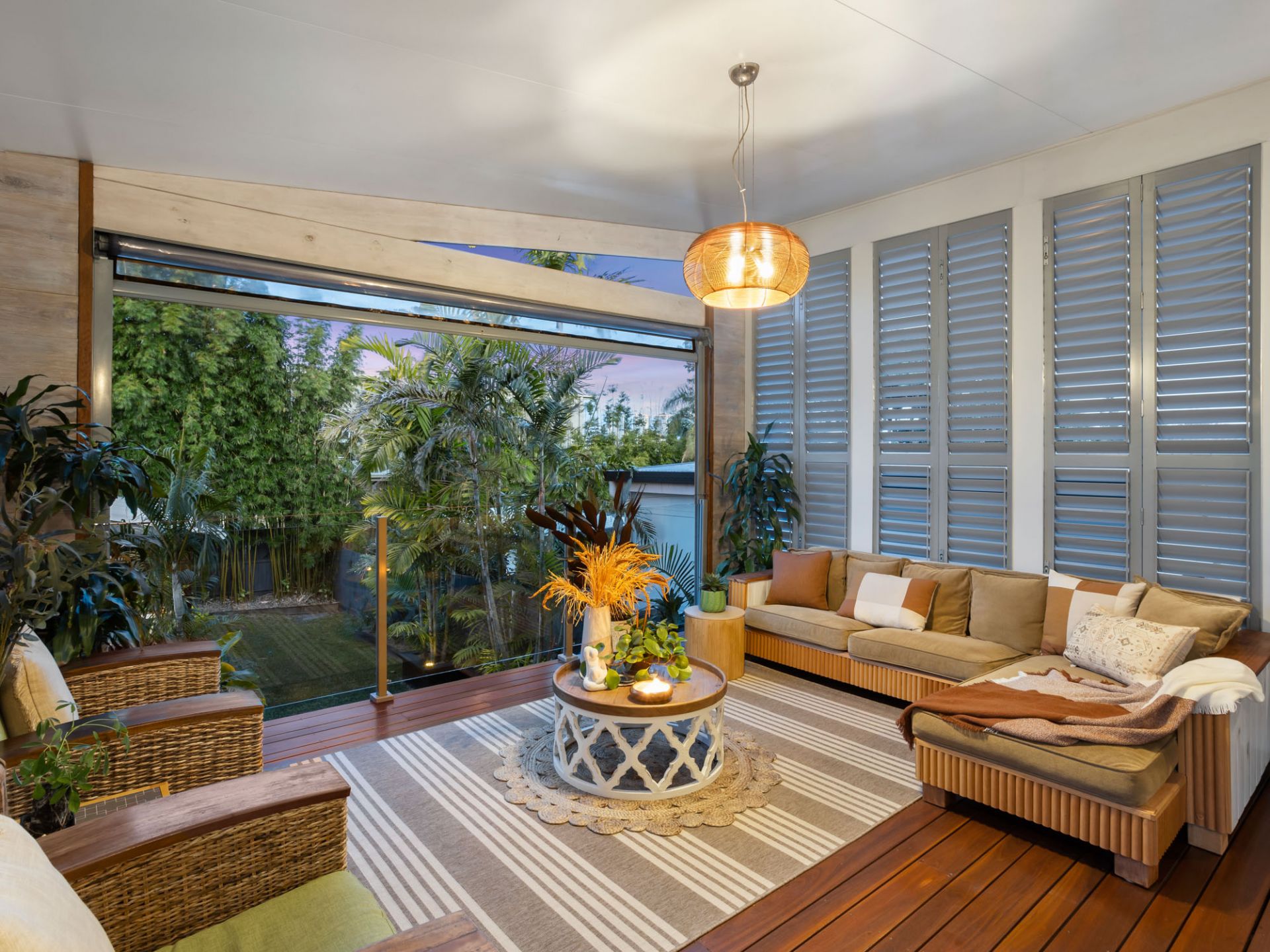 Experience the ultimate in tropical living with this charming three bedroom family home, where contemporary design meets serene escape. The open plan layout boasts sleek appliances and timber floors throughout, seamlessly connecting the expansive kitchen, which features a stunning splashback, pendant lights, and high windows that flood the space with natural light. The bi-fold doors lead to an entertainer's dream, an outdoor covered entertaining area, featuring privacy screens, casement windows allowing the natural light to beam in and also a roller privacy screen so you can have the option to enclose the room and make it an additional living area if you choose. This private retreat offers a perfect setting for both quiet moments and lively gatherings.