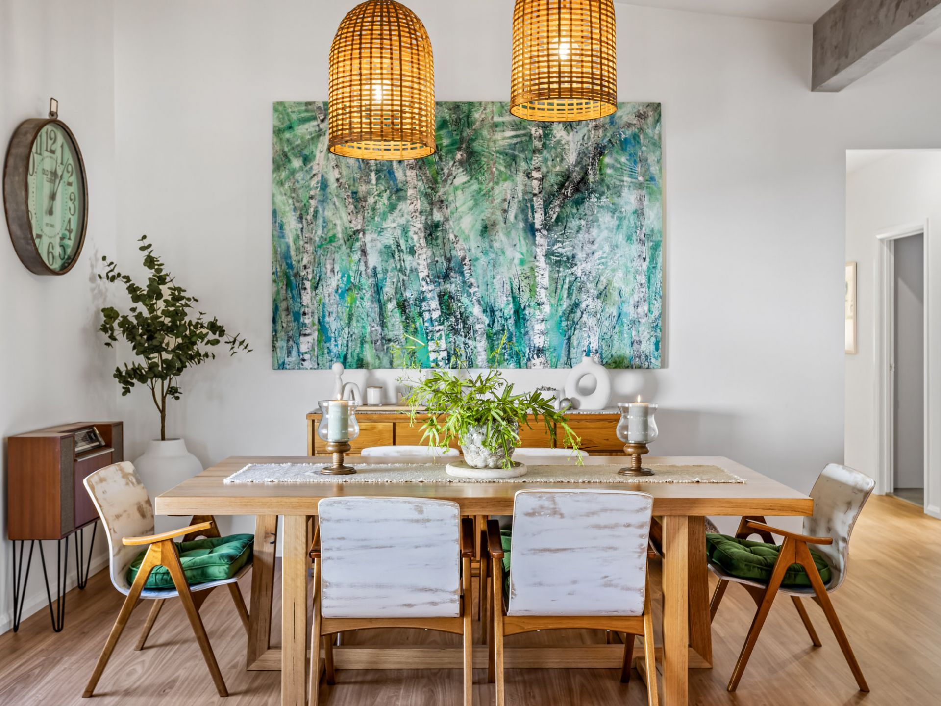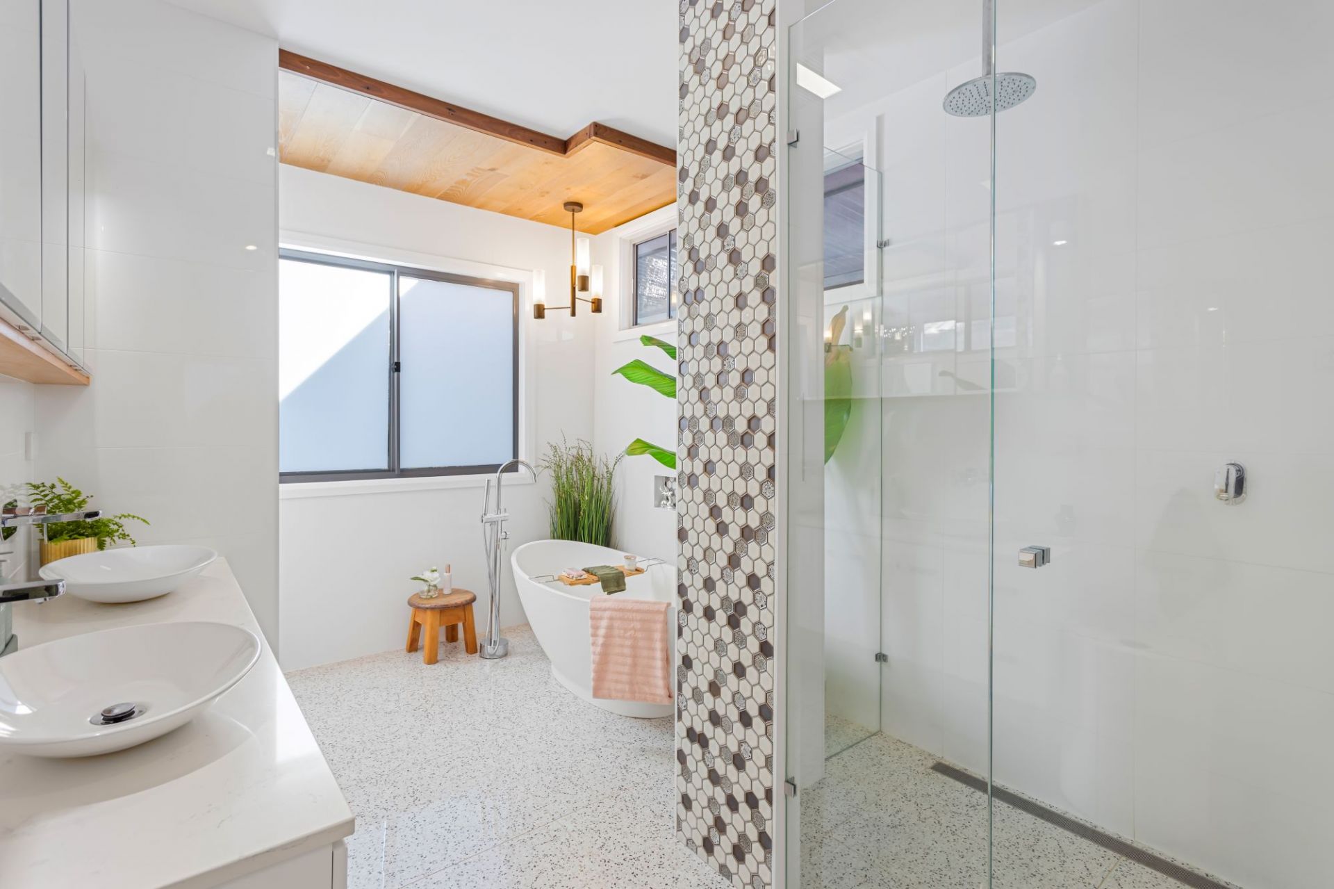 - Wooden beams that create a warm, rustic and inviting feel