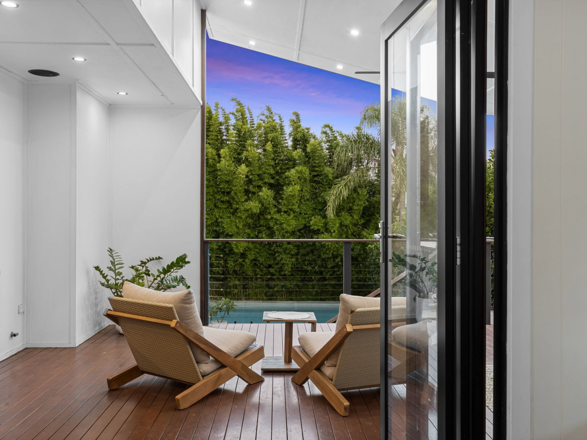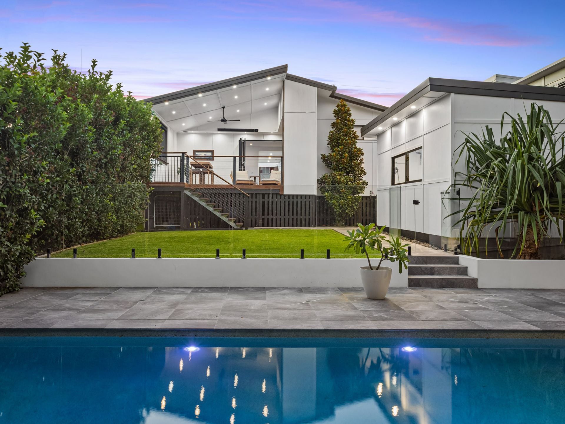 Bi-fold doors extend the living space seamlessly to the elevated covered entertaining deck, creating a true indoor outdoor connection. This space is well equipped for year round use, featuring a hard wired patio heater and overlooking the private backyard. From here, steps lead down to the resort style in ground swimming pool, complete with remote controlled pool lighting and four spa jets, creating a relaxed, resort like atmosphere for both day and evening entertaining. A separate covered poolside pavilion further enhances the outdoor offering, providing the perfect retreat for lounging or hosting guests.