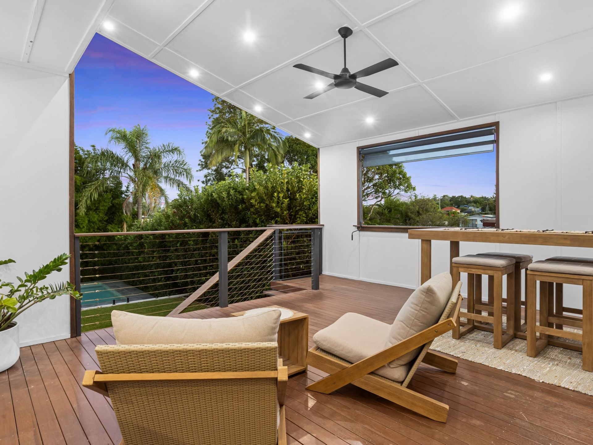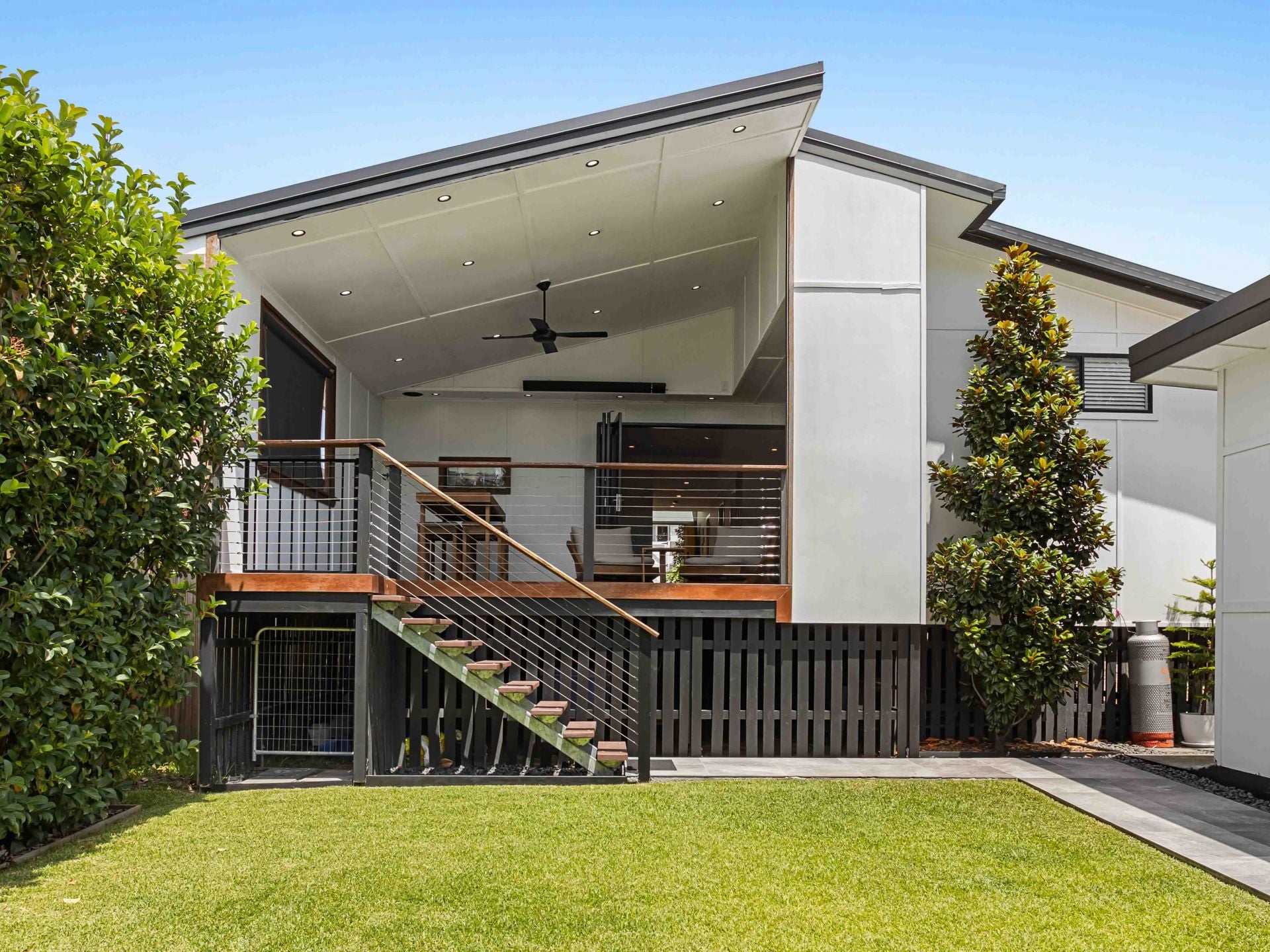 - Elevated covered entertaining deck with hard wired patio heater