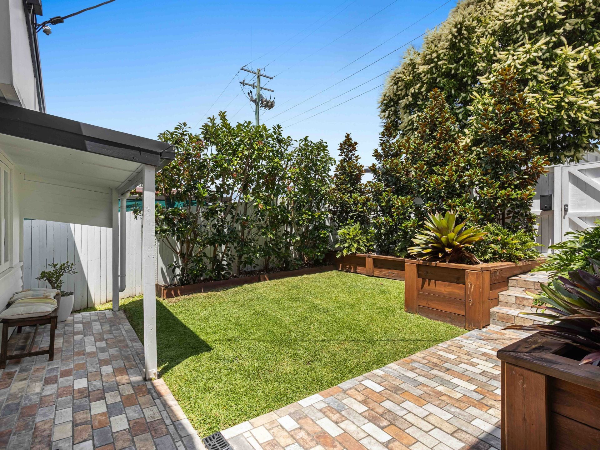 - Fully fenced backyard with lawn area