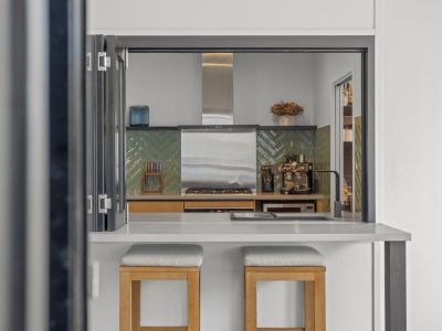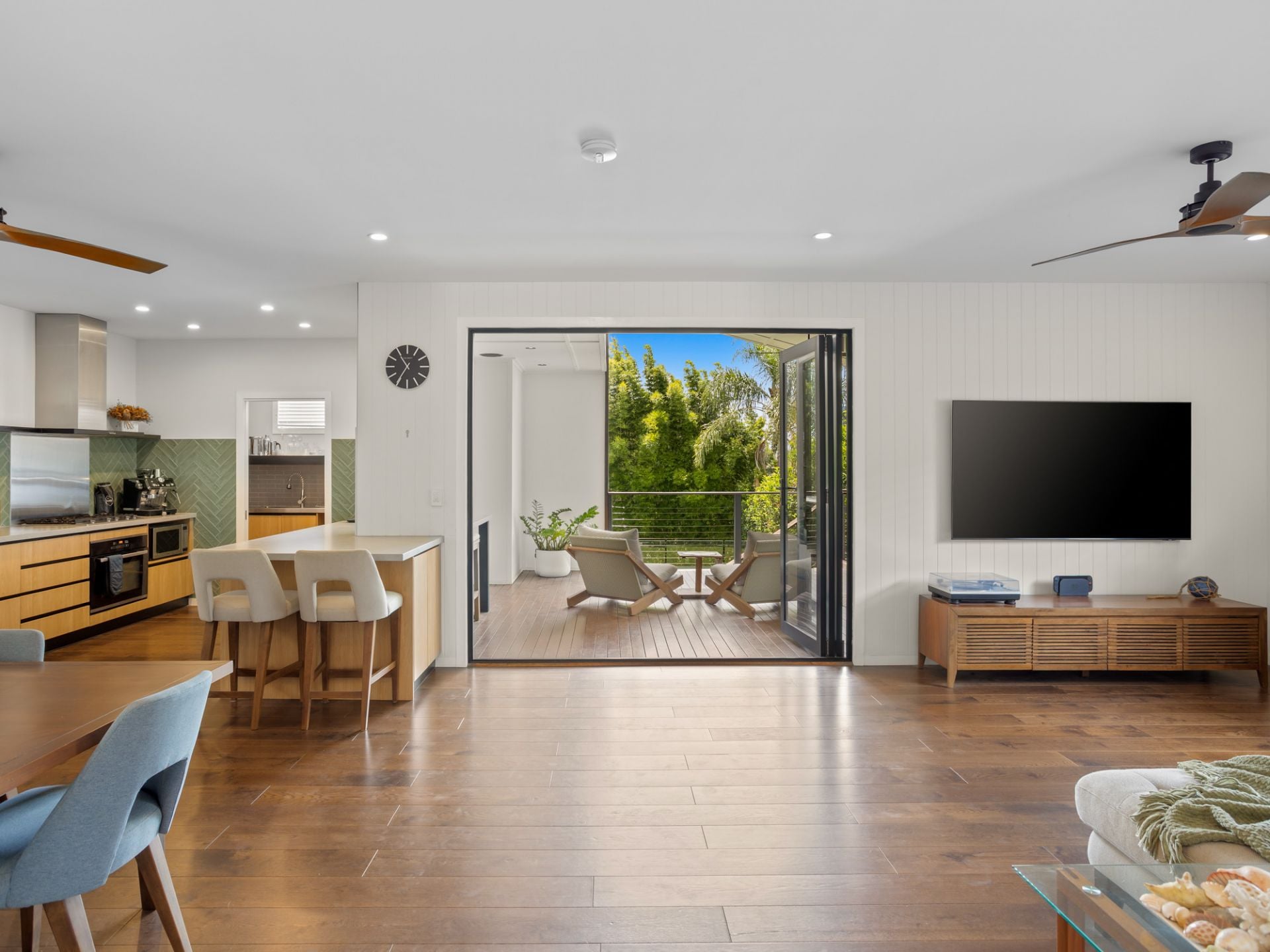 - Open-plan kitchen, dining and living zone