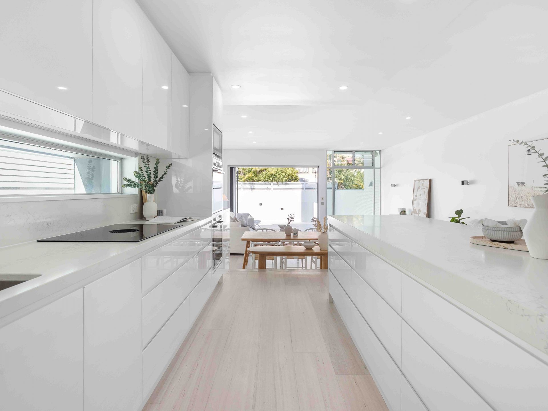 - Designer kitchen with island bench, induction cooking, and ample storage with a butlers pantry